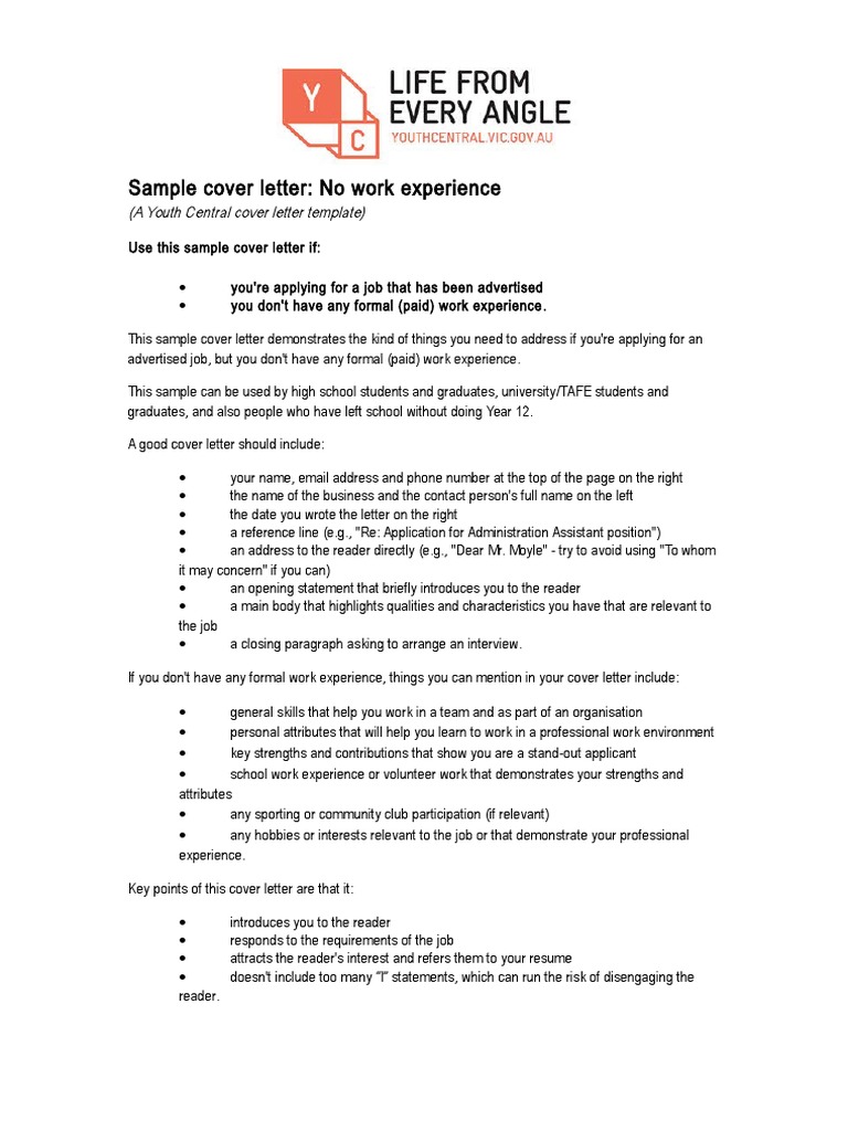 Sample Cover Letter Youth Central / If you've been flooded with resumes and cover letters, spawned by an advertised job opening, you know the difference between a good cover letter and a poor one.. Career the writer of this cover letter works in marketing, so hopefully he's able to market for himself with a st. Wow your future employer with this simple cover letter example format. Details include finding a space for an event, along with ordering beverages for guests and finding speakers or entertainment. There are subtle differences between application letters and cover letters. Here are some example cover letters for both experienced vet techs and recent graduates for inspiration on your own job applications.